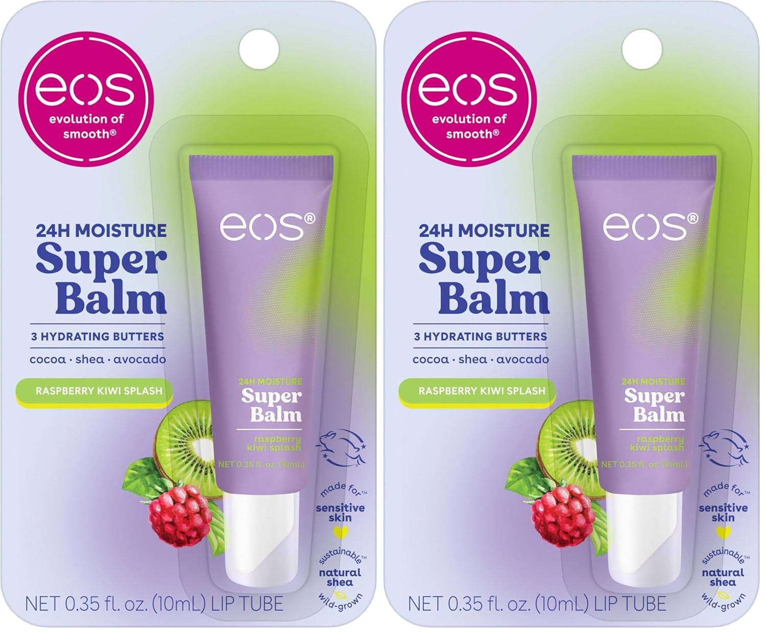eos 24H Moisture Super Balm- Raspberry Kiwi Splash & Strawberry Sorbet, Lip Mask, Day or Night Lip Treatment, Made for Sensitive Skin, 0.35 fl oz, 2-Pack(Raspberry Kiwi Splash)