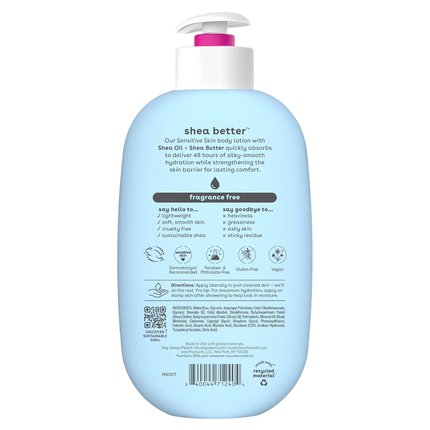 eos Shea Better Body Lotion- Crème de Pistachio, 24-Hour Moisture Skin Care, Lightweight & Non-Greasy, Made with Natural Shea, Vegan, 16 fl oz(Fragrance Free)